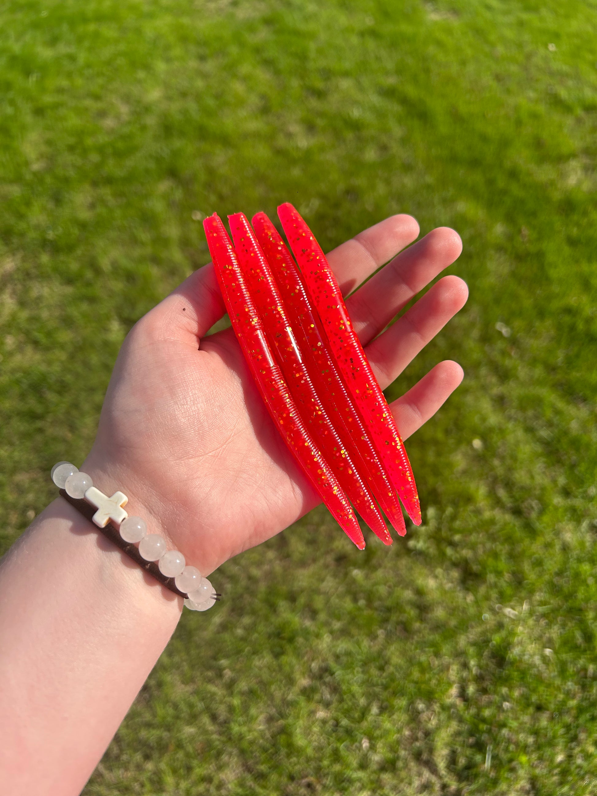 Hot pink worm with orange and yellow flake - Bag of 8