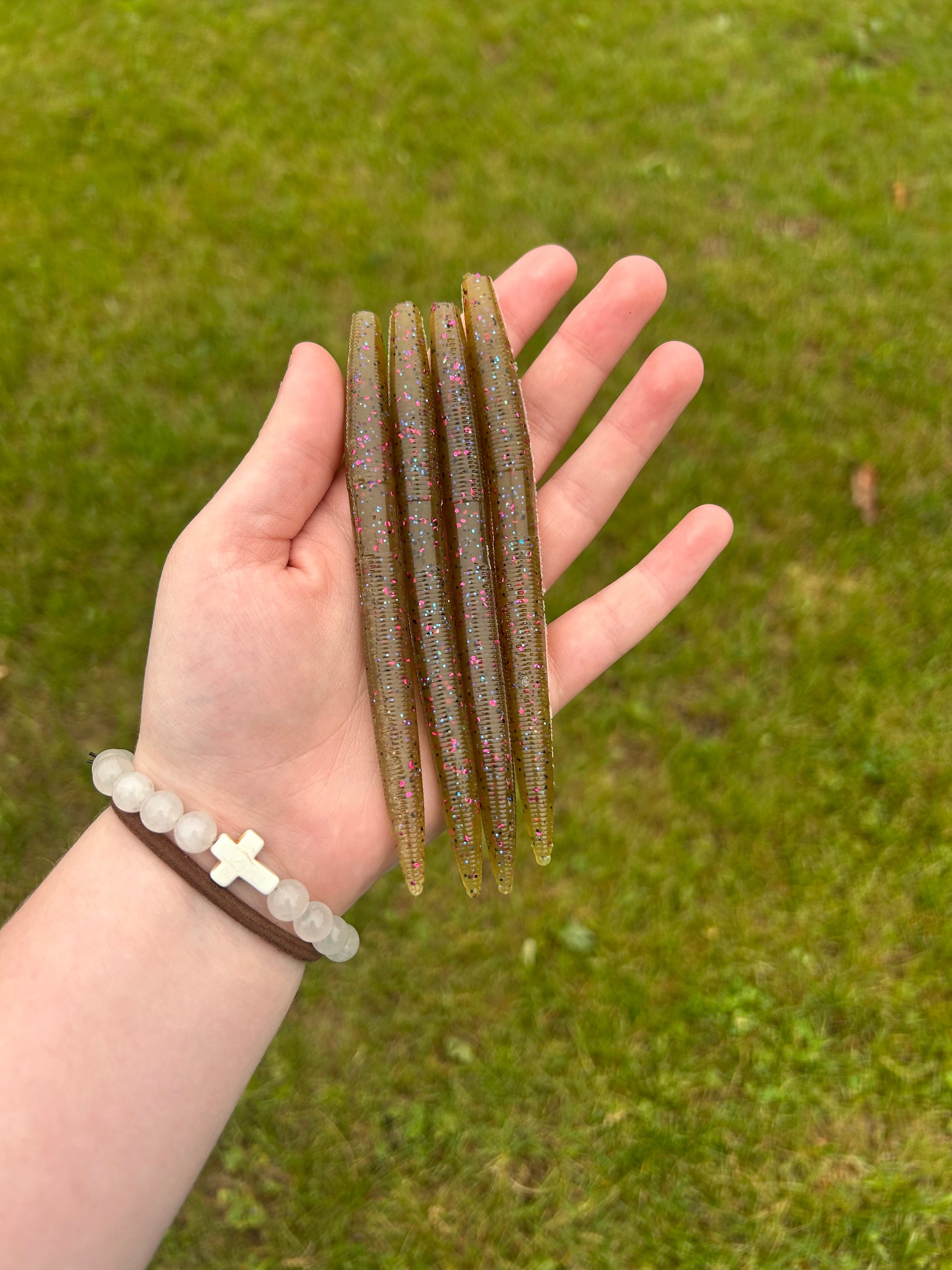 Green worm with fuchsia, black, and blue flake - Bag of 8