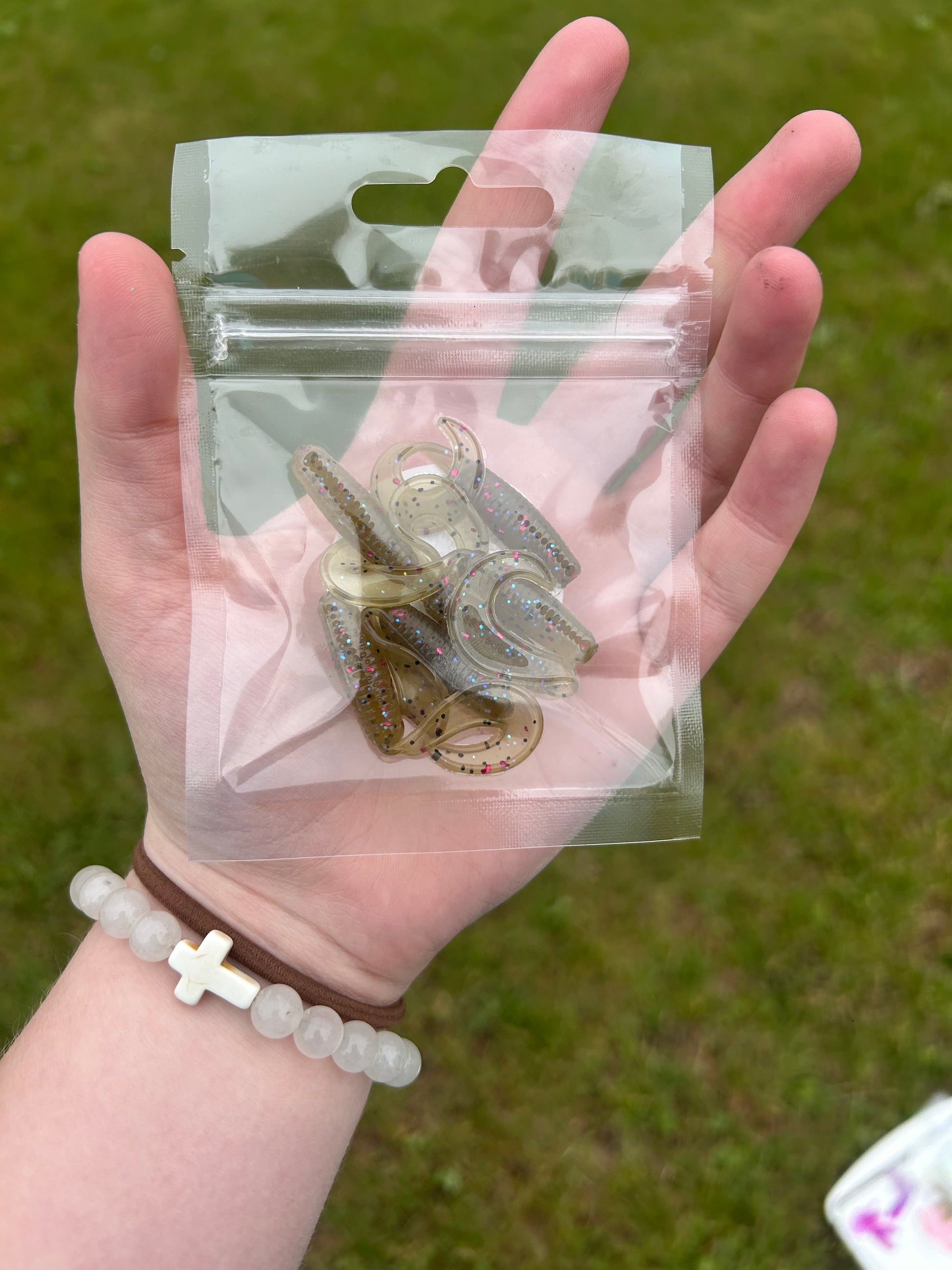 Green body with fuchsia, black, and blue flake - Bag of 6