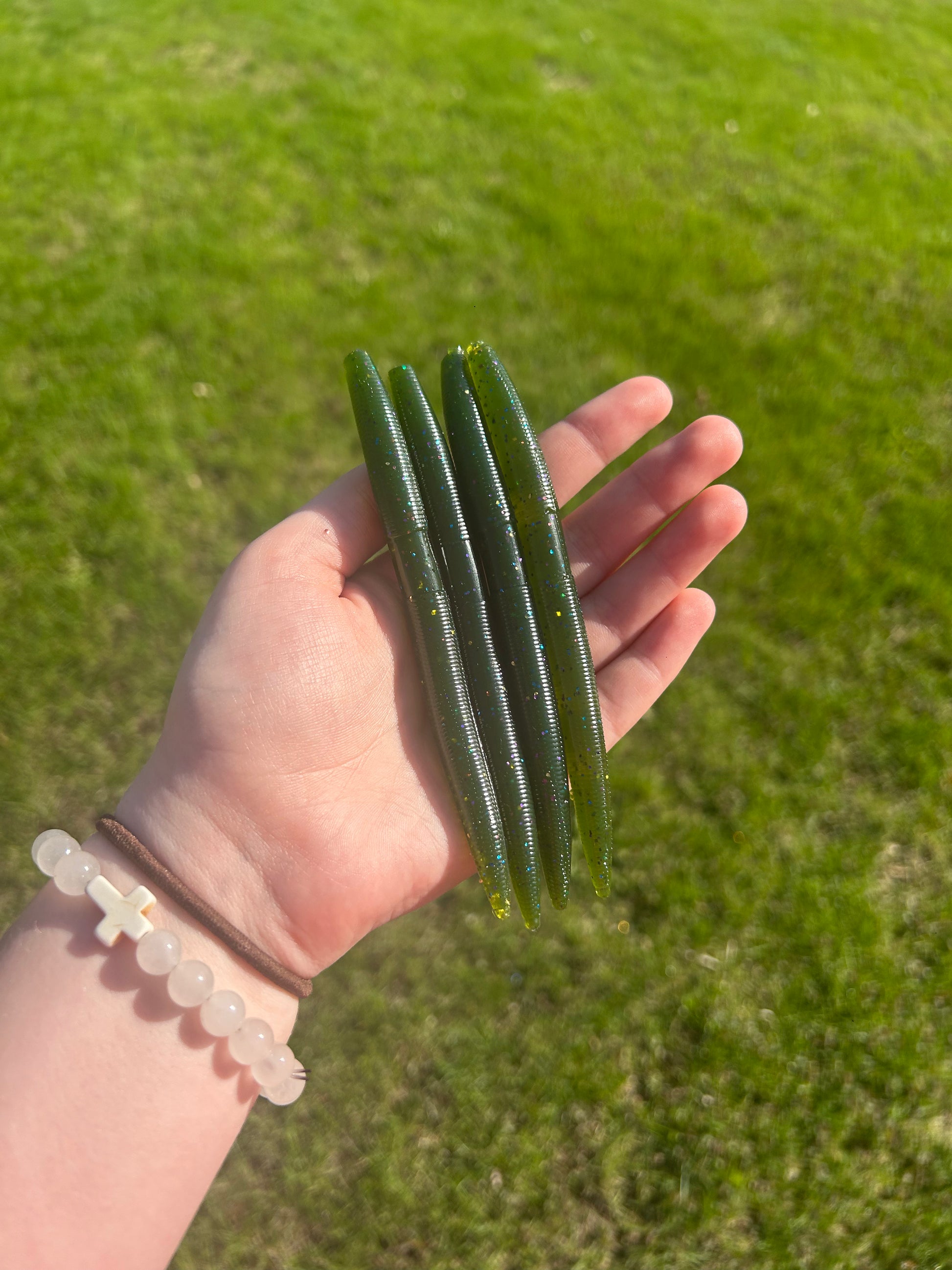 Green worm with blue, purple, and gold flake - Bag of 8